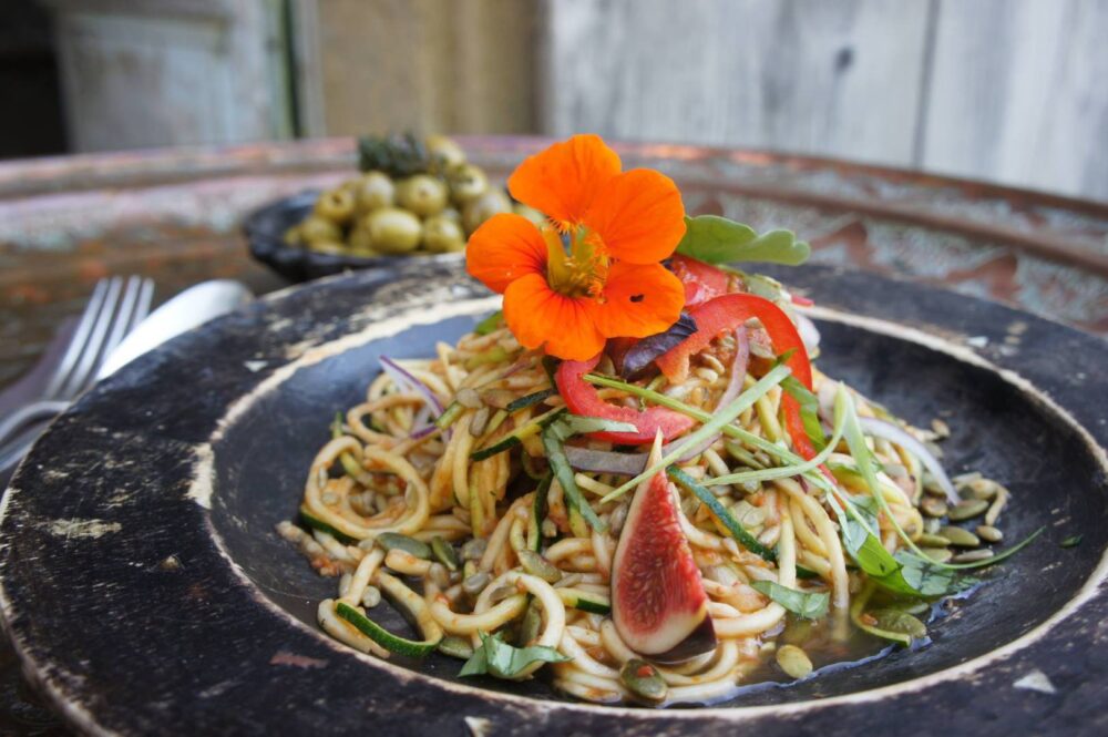 The gourmet vegan food has been described as sensational, outrageous, alchemical, the best ever, and more. It is often raw, always free from dairy, meats, gluten, and sugar.
