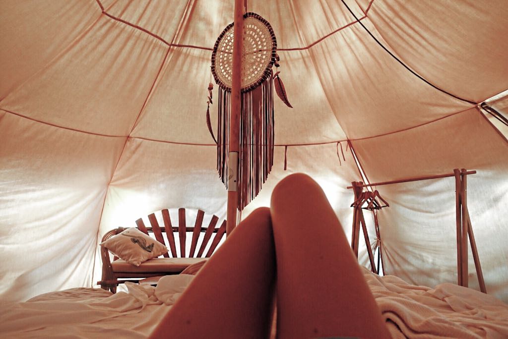 The hotel consists of 7 unique hotels rooms and 2 belle tents. The tents gives you the full glamping experience, close to the wild but still comfy with AC, private bathroom and double bed to sleep in. Prepare to be softly woken up by birds singing and a gentle glow from the sun through the tent.