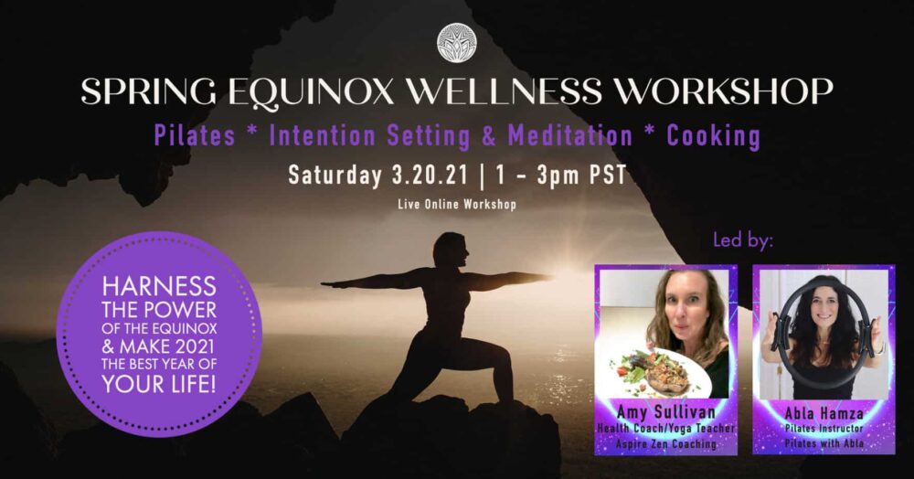 What you get: Pilates class, Meditation, Intention Setting, and a Cook-A-Long! Pilates Instructor, Abla Hamza and Health Coach, Amy Sullivan are hosting two hours of total wellness designed to get your body, mind, and spirit aligned, and guide you toward achieving your goals with more ease. We’re going to harness Equinox energy that provides the perfect template for resetting and new intentions.
