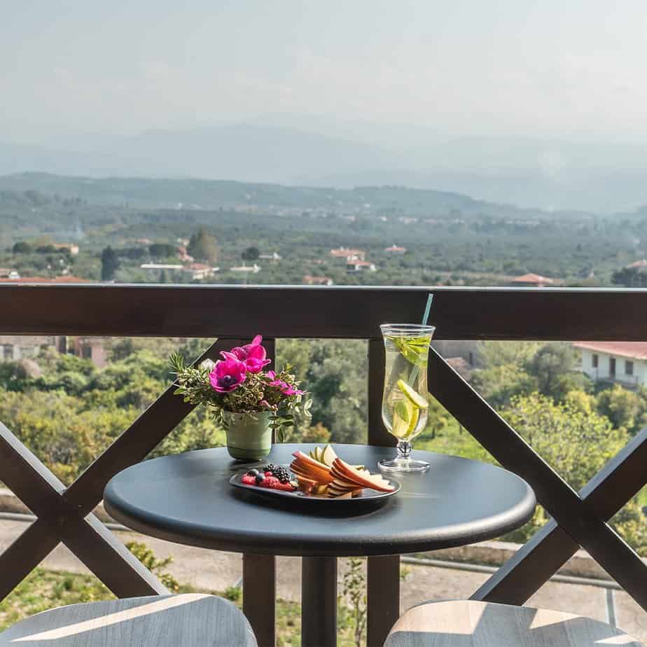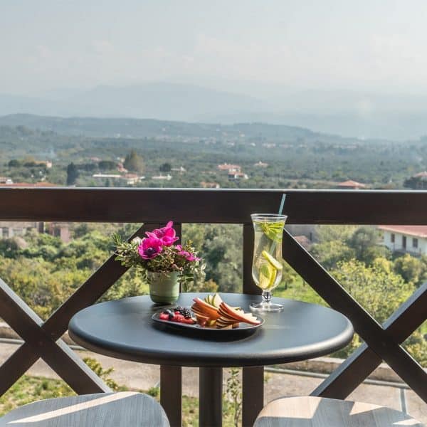 Guests can choose from 45 rooms and suites and enjoy uplifting views of the famous town of Mystras and its castle, as well as our private forest.