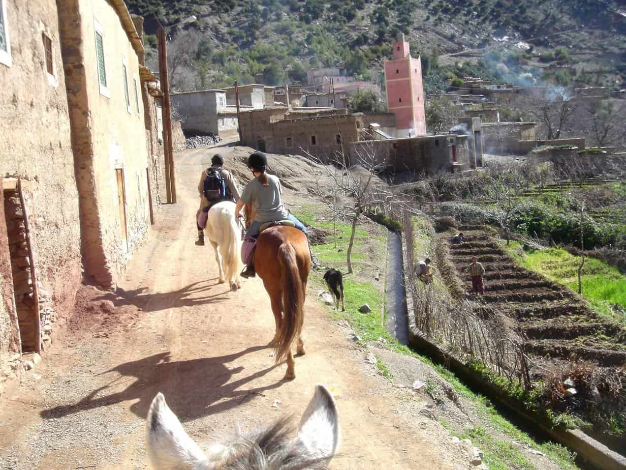 We provide private transfers from Marrakech Menara Airport. From Imlil village the last 10-15 minutes is on foot or by mule.