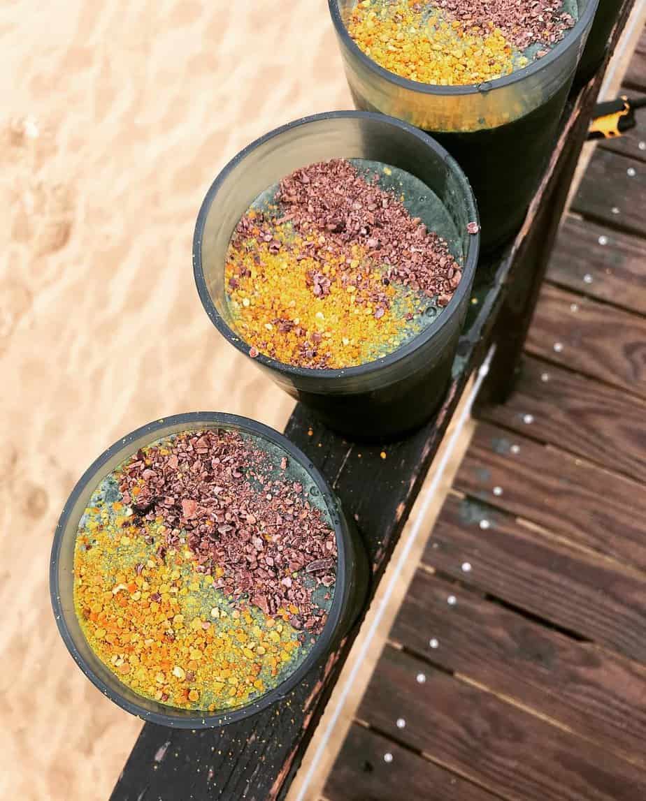 I use local almonds, honey and bee pollen. Non-vegan local products are optional. The local salt we use is hand harvested by an artisan salt producer using traditional methods.