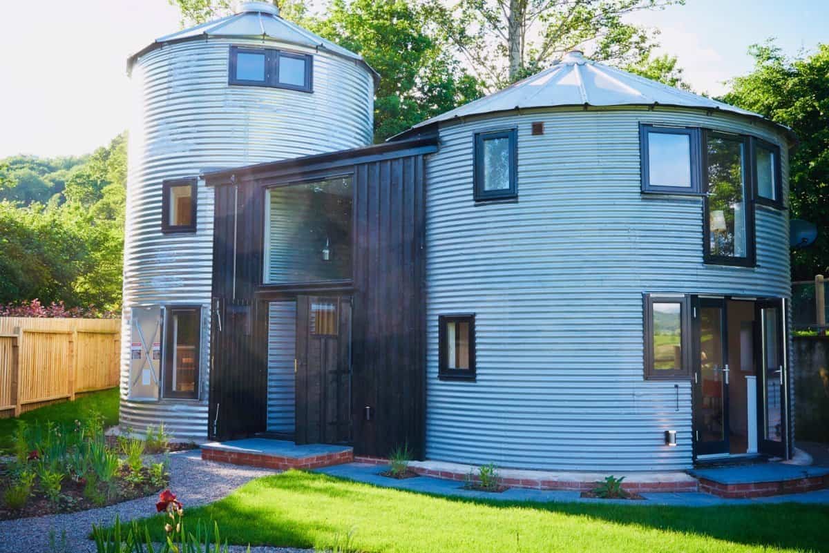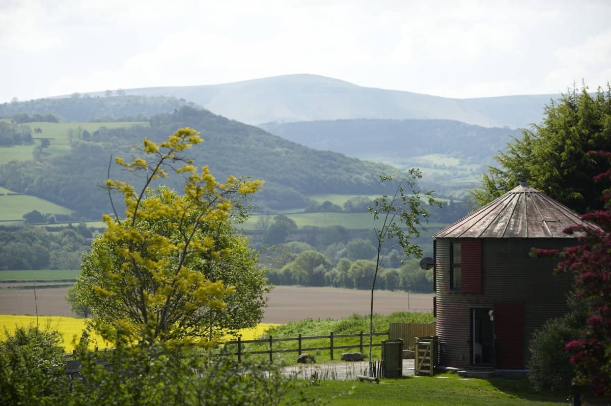 The Wheat Silo is a quirky accommodation for two people sharing a double bed and it has its own kitchen, bathroom and living space and stunning views of the Brecon Beacons.