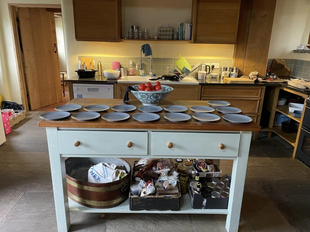 The Grooms Barn – is a separate cottage with two bedrooms. It has a kitchen and living room, an upstairs bathroom with bath and shower, toilet and sink and downstairs there is a toilet with sink.