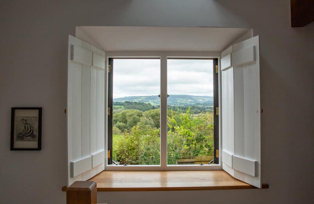 The yoga studio is a beautiful, long barn conversion full of natural light and double doors that open up into the inner courtyard and the valleys beyond.