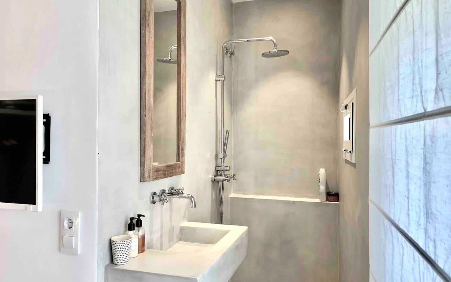 The views reach out across the town’s rooftops and onwards to the Bay of Roses and, as the pool has underwater lighting, the area can be enjoyed late into the night. But when the sun starts to climb high in the sky, wash off the heat in one of the three ensuite shower rooms, and soak under the rainfall showers before freshening-up for lunch.
