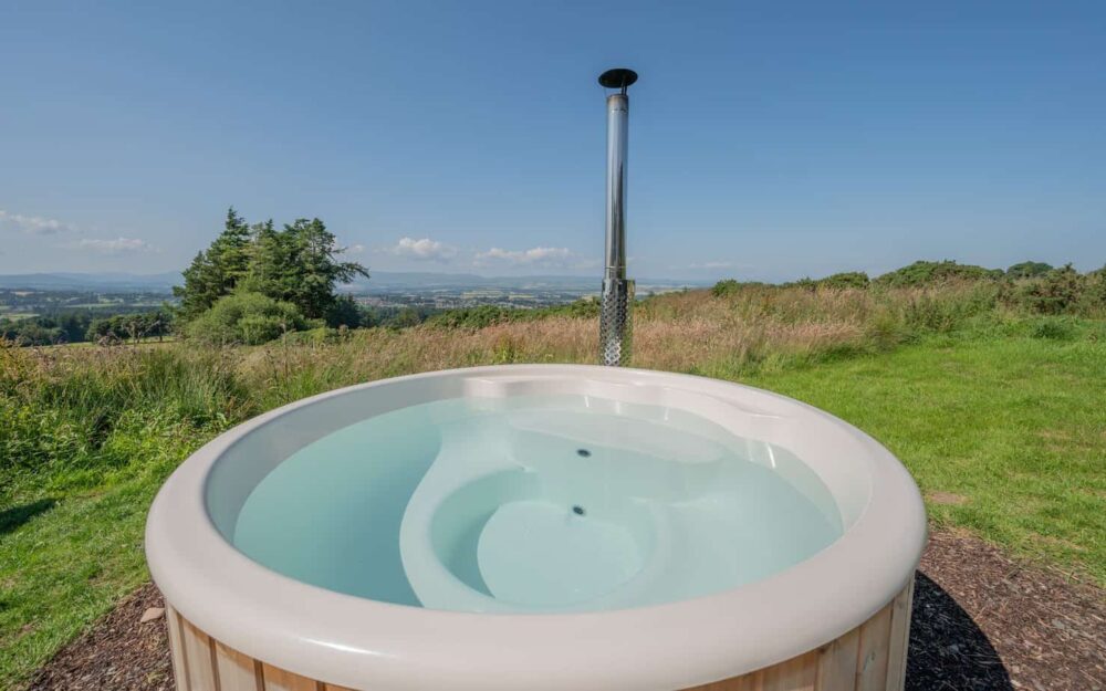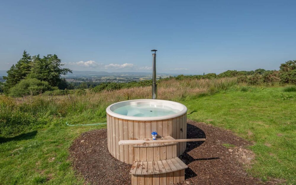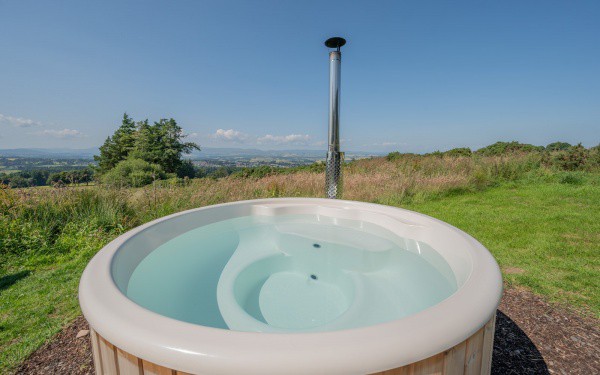 Wake up surrounded by the spectacular Scottish countryside with views across Gleneagles and out to the Highlands. Both have their own wood-fired hot tubs and space for two adults and two young children.