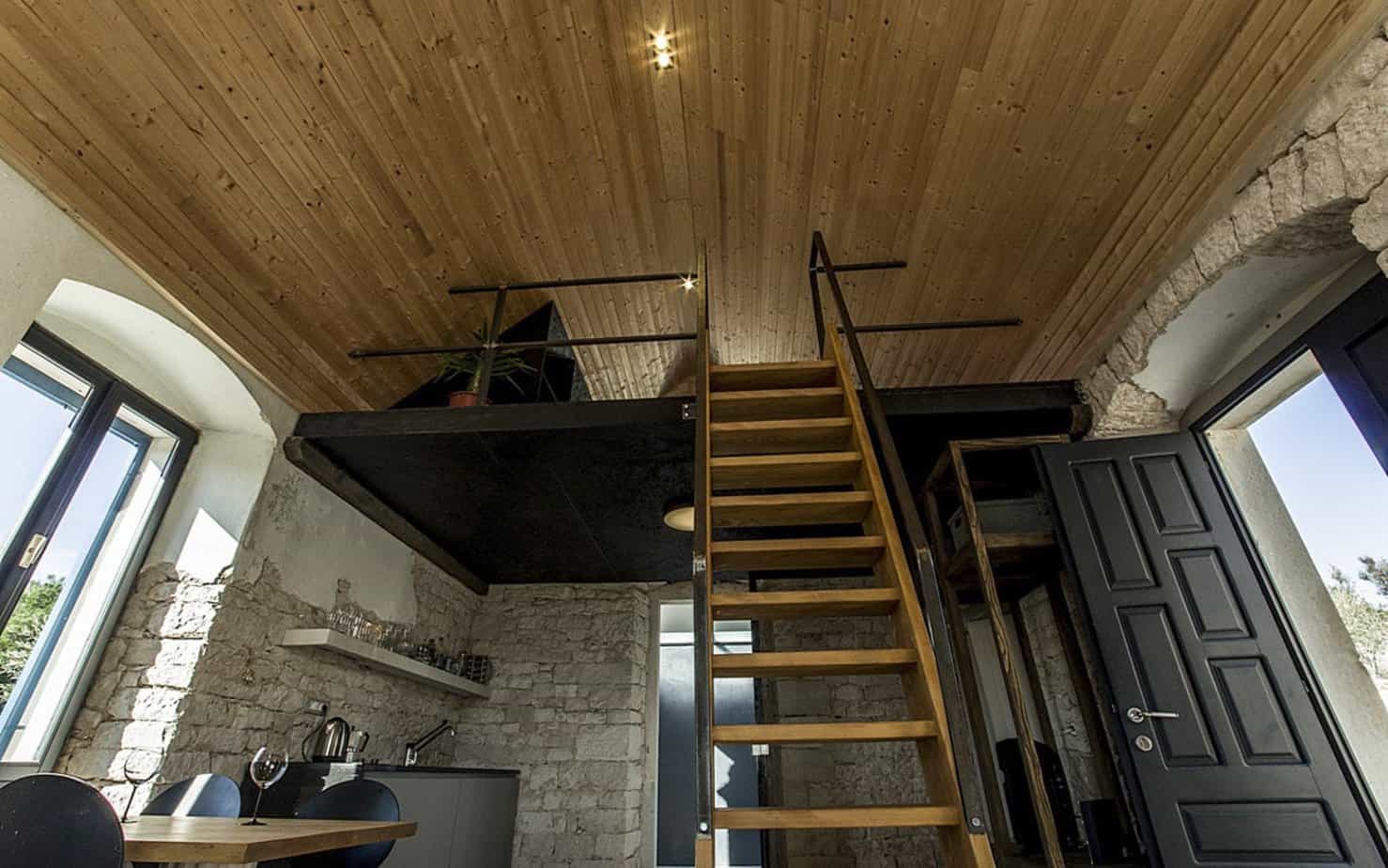 The main bedroom is located on a mezzanine level accessed by a ladder, which really makes use of the space well. The high-end bathroom is located on the ground floor and boasts a large window with pretty views that you can enjoy while getting washed and ready in the morning.