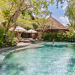 The nine sleeping suites, five named after each of the five elements in Balinese: Pertiwi (earth), Apah (water), Teja (fire), Bayu (air) and Akasa (ether), two Waterfall suites and two Bidadari (angel) suites, embrace the designs of nature fashioned in the forms of sacred spirals and organic leaves.