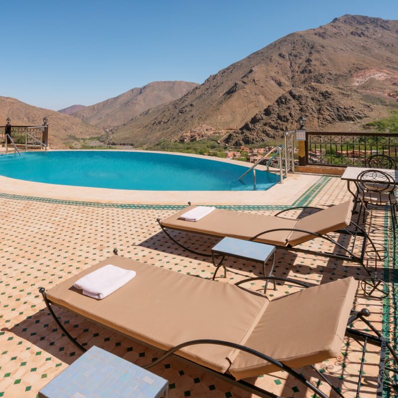 Ever wondered what it’s like to stay in a Moroccan Castle in the Atlas Mountains? Now’s your chance! Located only 90 minutes away from Marrakech, stay at a 1820m altitude with spectacular views of the valleys and in the distance Jbel Toubkl which stands at 4167m – the largest mountain in Northern Africa.