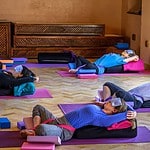 Evening yoga on your yoga holiday Marrakech: Arrive at our fully equipped yoga shala for sunset yoga. Settle into a more restorative practise of yin yoga and yoga nidra and long savasana to really relax and restore after a long winter.