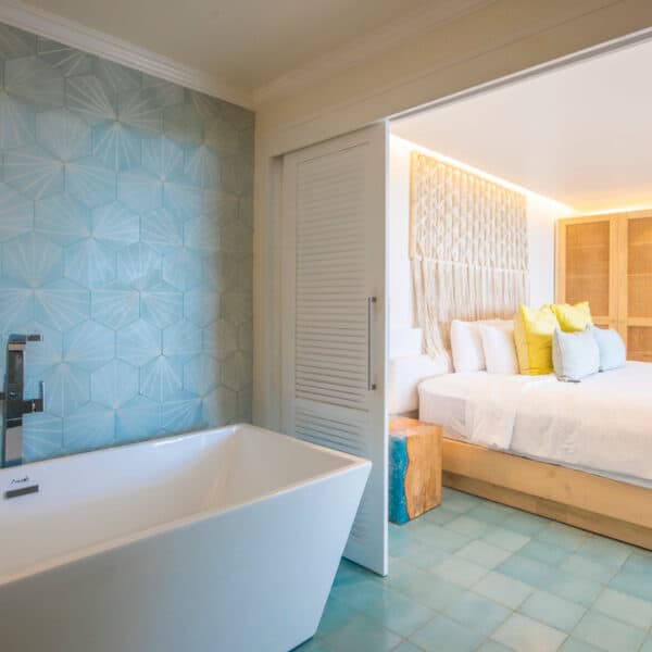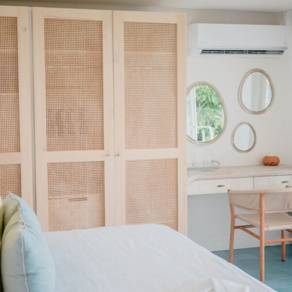 Open and airy, these 5 rooms, Cacao, Chan, Curcuma, Maracuya, and Cas, are located in the garden areas with views of the mountain landscape of the valley and ocean. Each room features a King size bed and Queen option, plus Hollywood twins.