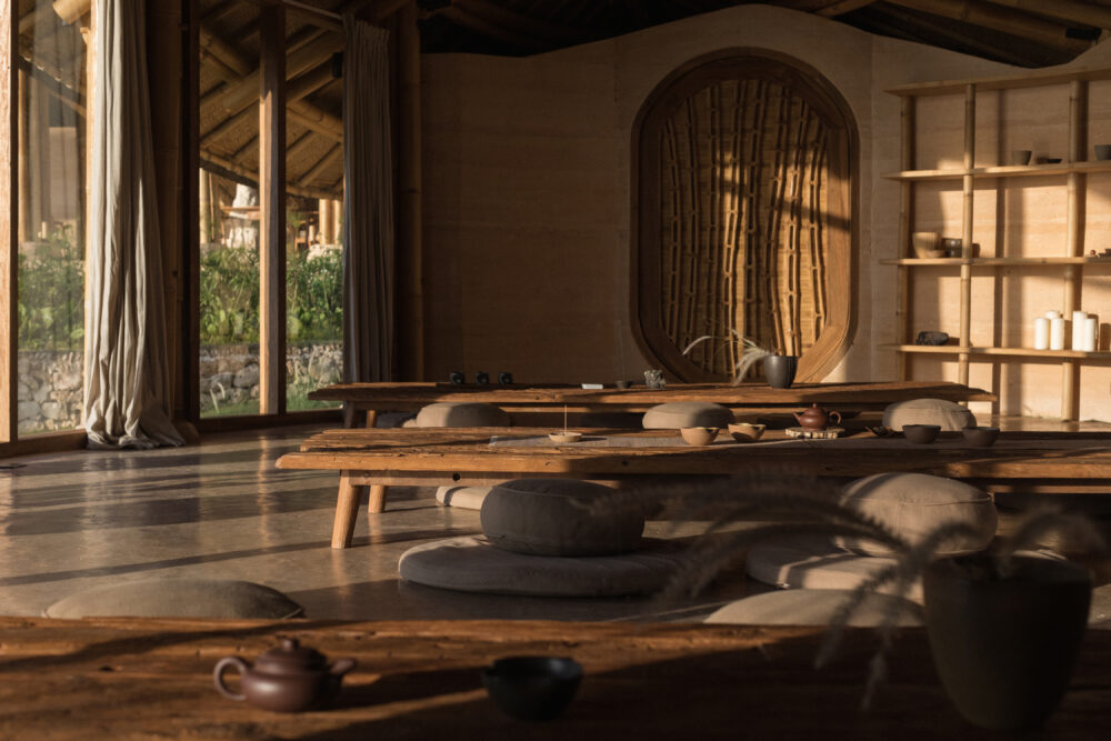 - Daily workshops and ceremonies, including yoga, meditation, breathwork, sound therapy, water flow, movement, and tea & fire ceremonies