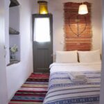Rock Cottage, a beautifully renovated stable built within a massive rock that forms part of the bedroom and bathroom walls. The bedroom has a comfortable double bed that leads out to a patio with a seated area alongside the granite rock with views of terraces.
