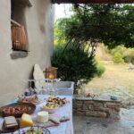 Access to an outdoor Yoga Deck a short walk away– along the olive grove road, via the Dovecot across a wooden footbridge, through the gate under the shade of the Linden Tree.