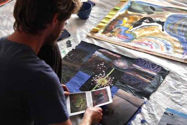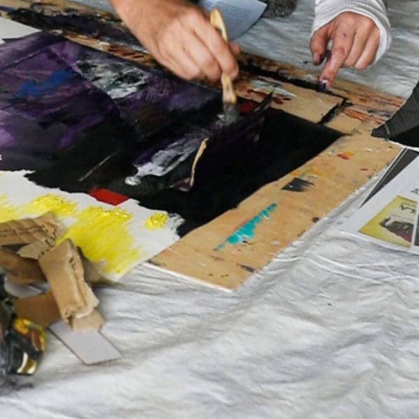 This workshop takes place in my art studio with a group of 5 participants only. Each participant has a working area with easel, table and floor space to create inside the studio plus outdoor space if weather permit.