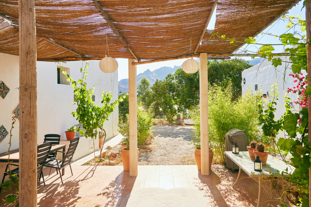 The cortijos are six separate studio apartments with the pool close by. Each has its own porch, bathroom, living area and kitchen with an outdoor terrace.