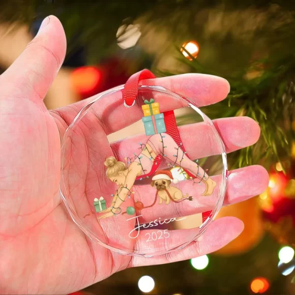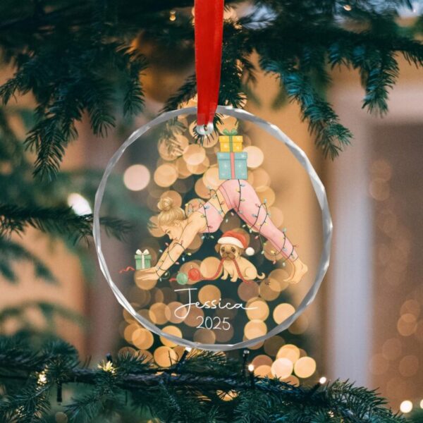 Yoga ornament, dog lover, pet gift, custom name, decoration, Christmas ornament, yoga girl, personalised gift, yoga lover.