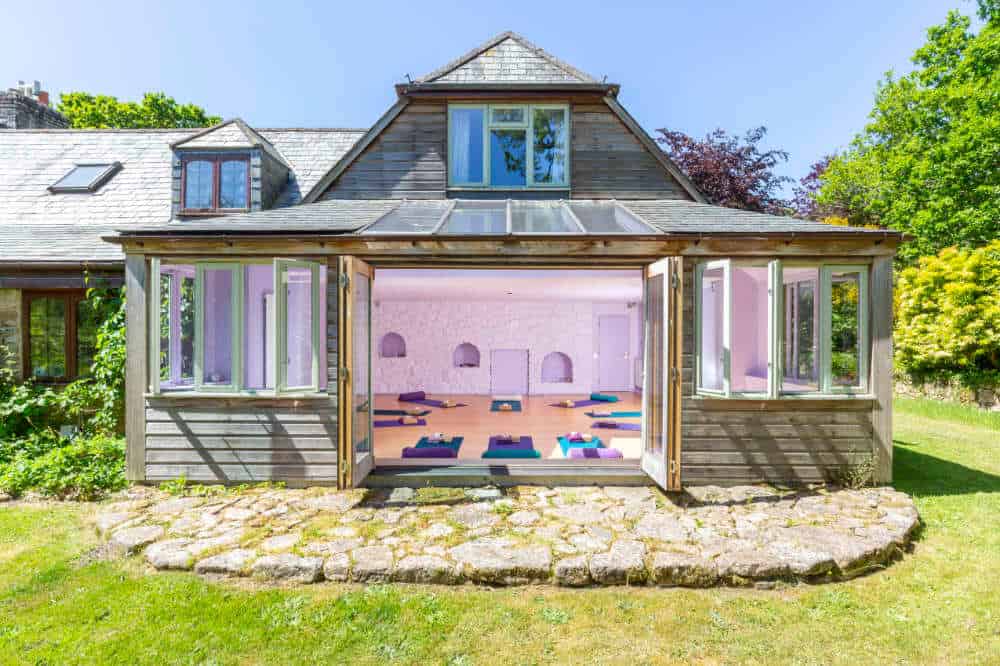 The Yoga classes on this mid-week Devon yoga retreat will be split between the glass-walled garden studio and the cosy main house studio.