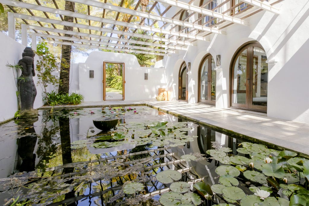 One of the first things that reminds me I am back at Atzaró is the distinctive croaking sounds of the frogs as I walk down the path, past the Buddha statues to the entrance of the 300 year old finca. Then there’s the abundance of orange trees (a symbol of love) and the brightly coloured fruit that has fallen off the trees, picked up and placed upon a table. Like the orange, Atzaró is happy, vibrant and attracts the attention of others. The rich aroma of the blossom, lavender and rosemary fill the air from the gardens.