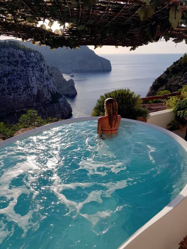 Located in San Miguel in the northwest of the Island, many of the residents and outside guests head here for pure relaxation at La Posidonia Spa (named after the protected seaweed that grows around Ibiza), to experience the famous ‘Cascadas Suspendidas’, an outdoor thalassotherapy circuit and a series of heated infinity pools where you spend 45 minutes following the bubbles of varying temperatures and water jet strength to move from pool to pool. Of all the spa’s I had been to in the world, I had never done anything like this!. The view from here (again!), as you can see from the photo is priceless.