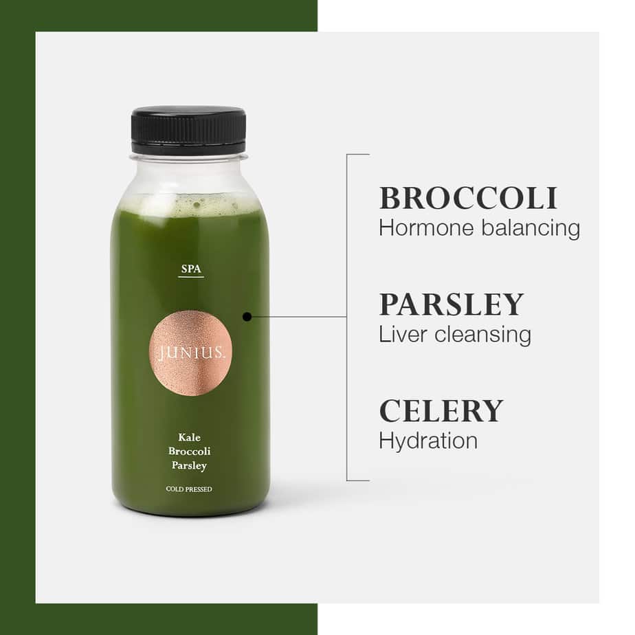Top tip: From Maria King, Junius, Co-Founder and Certified Practitioner from the Institute for Functional Medicine: “Green juice benefits reach far and wide throughout the body. At JUNIUS, we cold-press five different chlorophyll-rich green vegetables in each of our SPA juices, making it an incredibly nutrient-dense, on-to-go addition to a healthy diet and lifestyle. Chlorophyll is a detoxifying pigment found in all green plants – it strengthens your immune system, supports production of red blood cells, and helps fight inflammation. One of the best ways to support vibrant health and recovery from dynamic exercise is to include a daily green juice in your diet.”