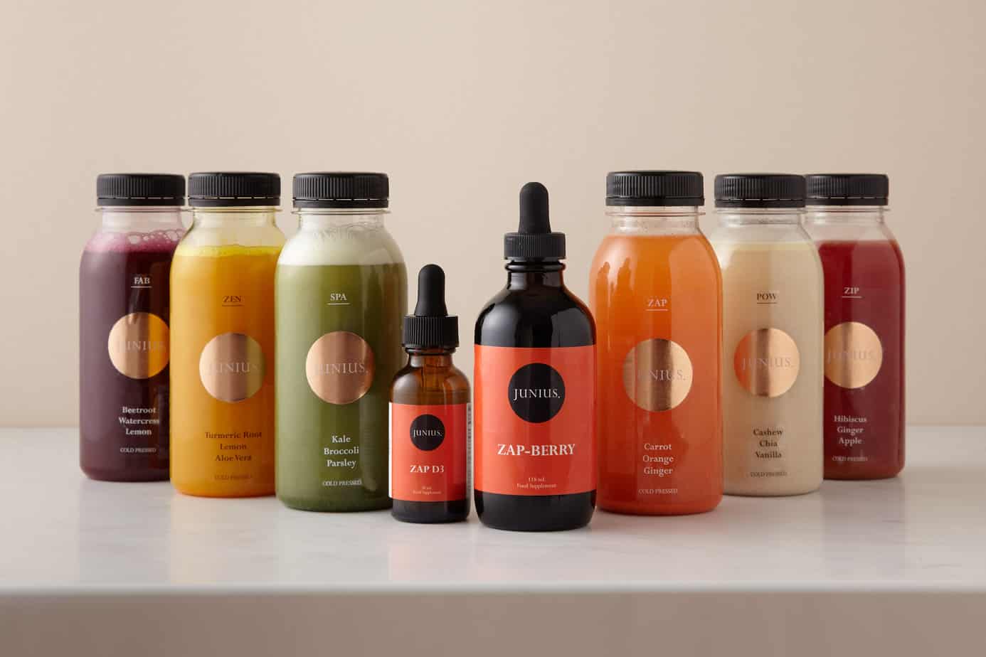 JUNIUS’s delicious and uniquely formulated cold-pressed juices, powerful shots and super supplements have been meticulously designed to feed the roots of health with every sip. The range is cleverly divided into seven colour-coded pillars, each targeting a specific health goal in a user-friendly way.
