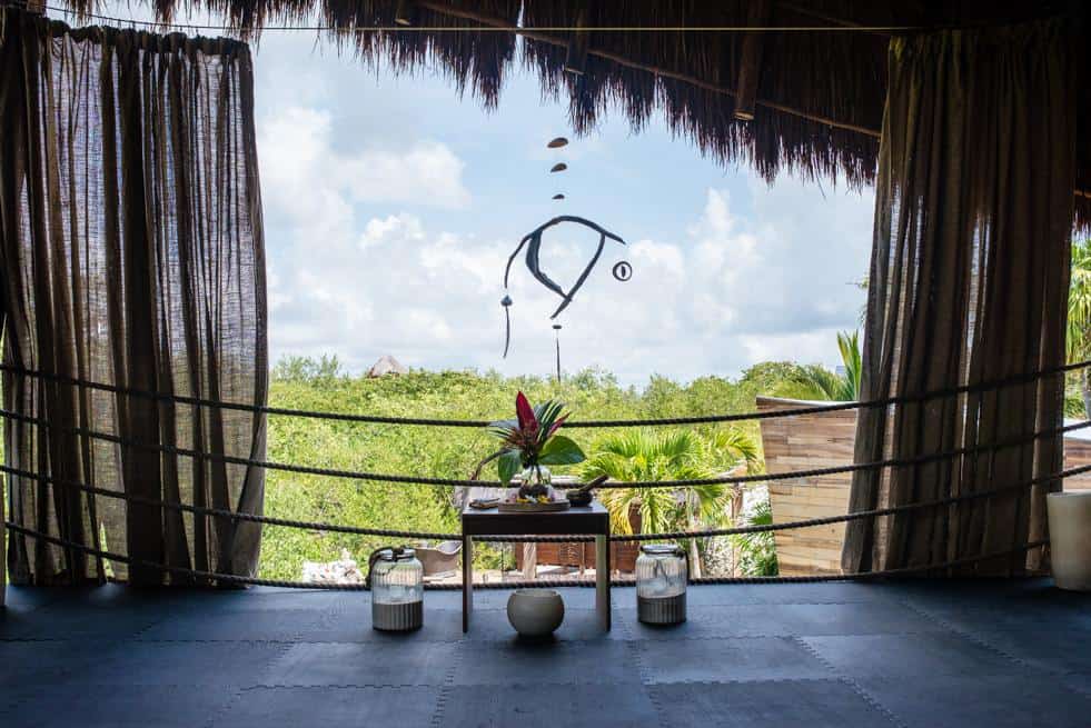 Ahau Tulum hotel, located right on the beach and hemmed in by the lush jungle, also doubles as a yoga hub and spa.