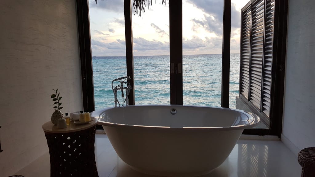 We stayed in a deluxe water villa with pool, that again had direct access to the ocean, although the pool was quite spacious and big enough to swim in! After you’ve taken a bath looking out to the ocean you can take another bath and jump right into the water!