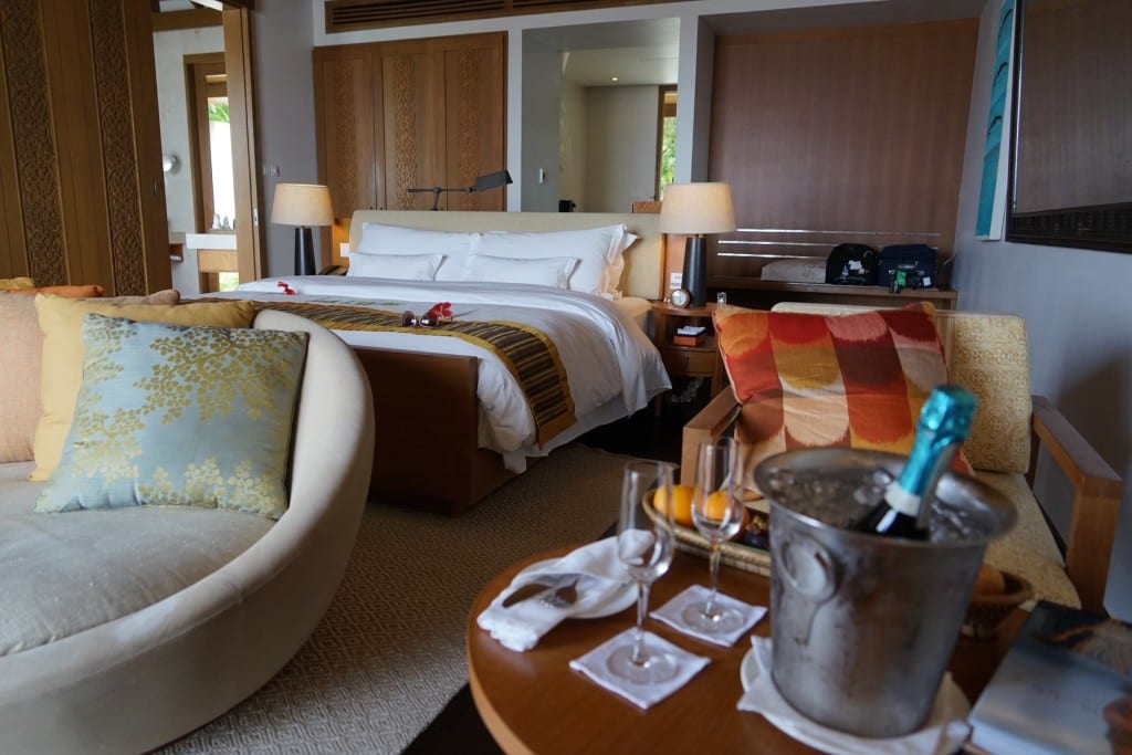 We stayed in a deluxe pool villa right on the beach, set over two separate pavilions – on one side a living room, and on the other a bedroom.