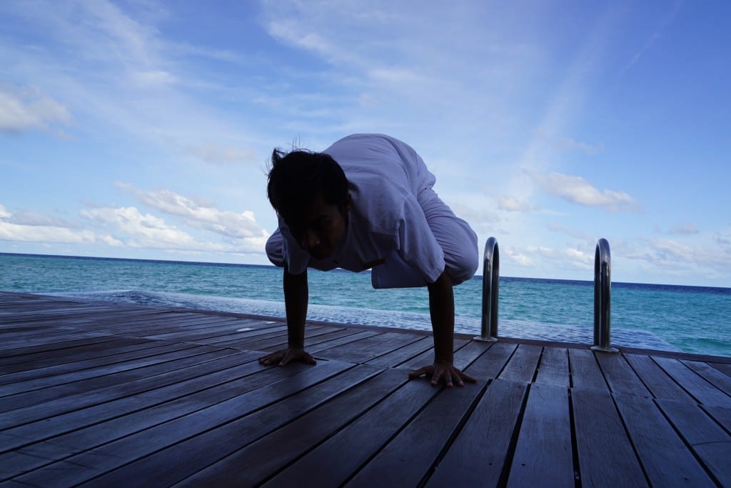 On the last evening, which was also International Yoga Day, we got to celebrate it with a full moon yoga class on the incredible yoga deck of the spa. Boris captured the moment very well in this photo!