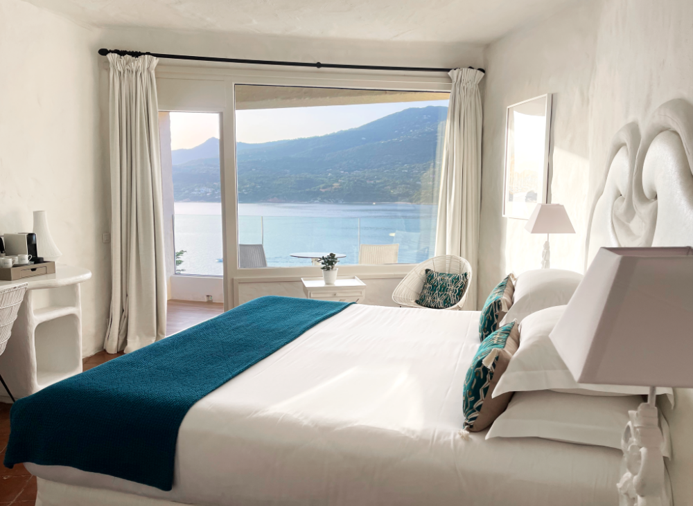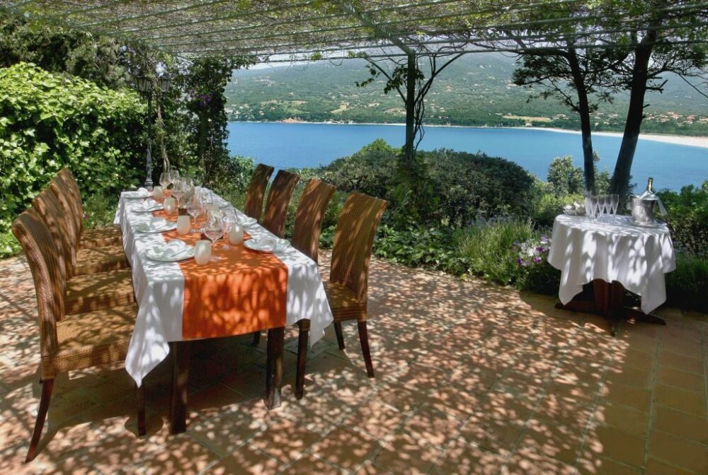 Nestled in the heart of the pines is a beautiful terrace with spectacular views of the Gulf of Valinco. Here you will see life in blue, white and green.