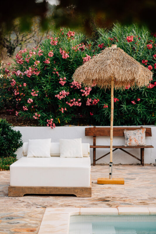 Located on the ground floor, closest to the pool & bar, is soft and feminine with various white and cream finishings. There is an outside terrace with seating area and hammock. There is AC, a wardrobe, free WiFi, hairdryer, Bluetooth speaker, sun hats and mini safe. The ensuite is fully equipped with walk-in rain shower and plush Zara Home towels.