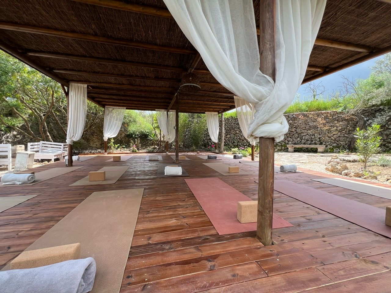 - Covered Yoga Pergola (50m2) fits 18 mats