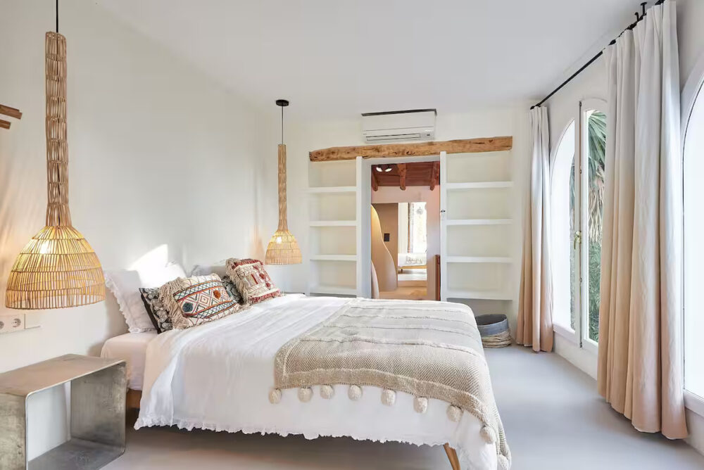 The stunning bay of Cala Xarraca close by ((accessible via a half hour hike or a 10 minute drive), with its crystal-blue water is one of the most isolated bays in Ibiza, boasting the most magnificent views. Surrounded by lush green pine forests dotted with white houses, red cliffs and pathways, this area is perfect for walks and exploring. Ibiza airport is a 26-minute drive by car.