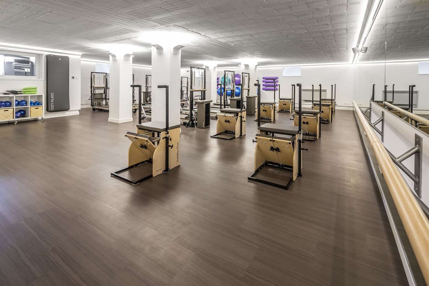 The equipment is all Merrithew equipment. Thereare 16 major pieces: 8 SPX reformers with towers, 8 Split-pedal Chairs and all accessories such as boxes and jump boards.