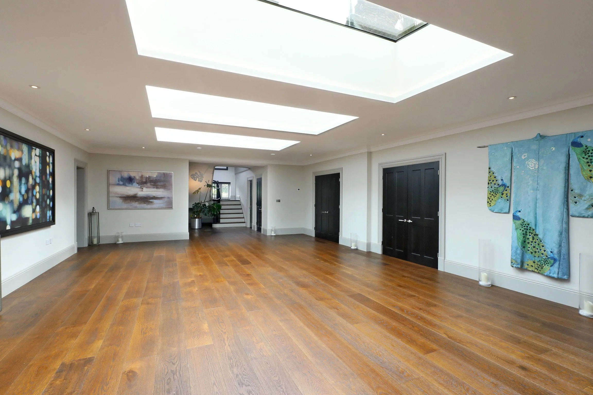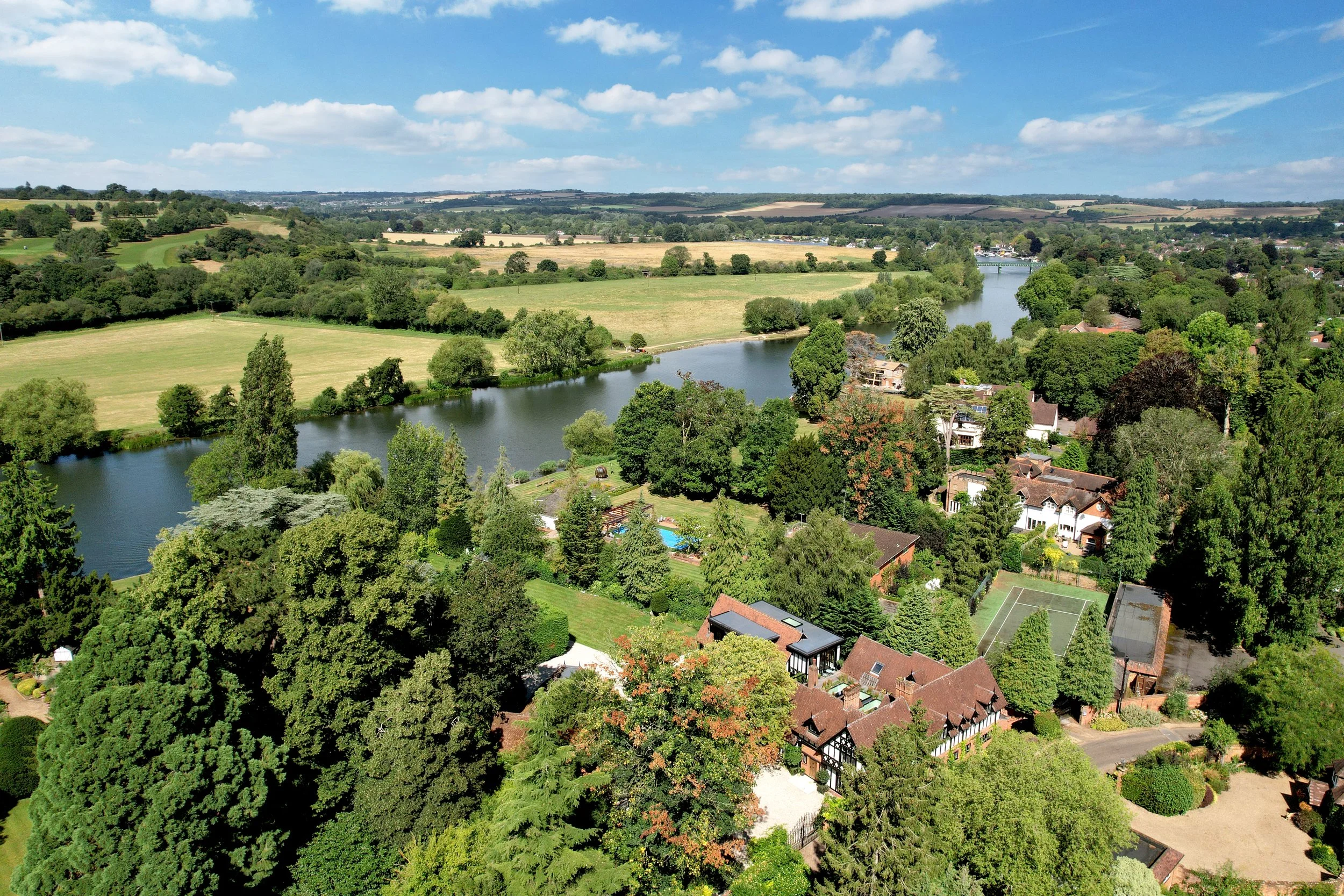 A long, tree-lined garden stretches from the house all the way to the river’s edge, ending in a large jetty overlooking the Thames and Cookham Moor beyond. The large, flat lawn is an idyllic location for outdoor yoga.