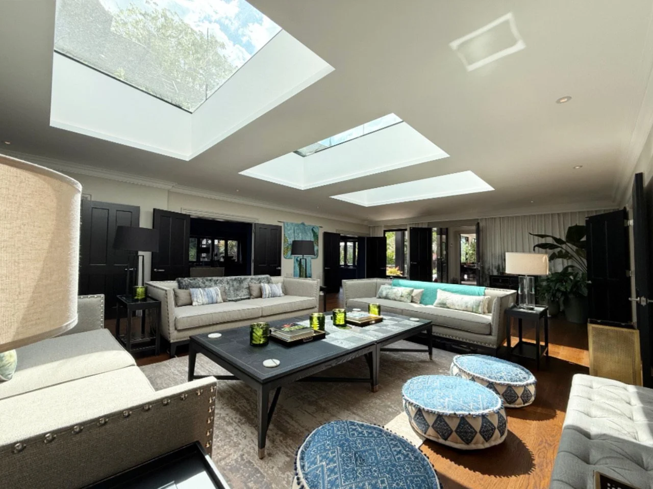 Lit from above via 3 huge rooflights, it is a wonderful, embracing space. At night the fairy lights of the roof terrace create a magical ambience.
