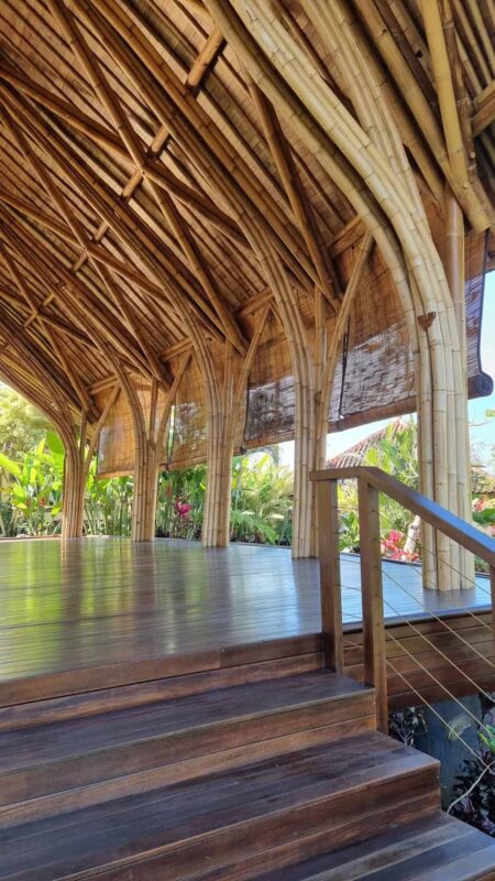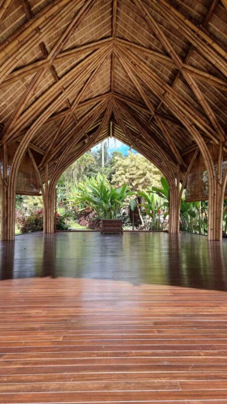 Our Yoga Space is an open bamboo structure with quality wooden floor and bamboo curtains (no walls). Newly built, during the pandemic.