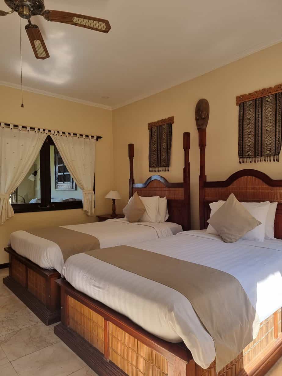 8 Lodges (All Twin Bed, can be put together to a Double Bed). Javanese teak-wood building, looking out to the vast garden.