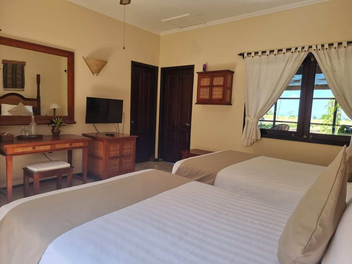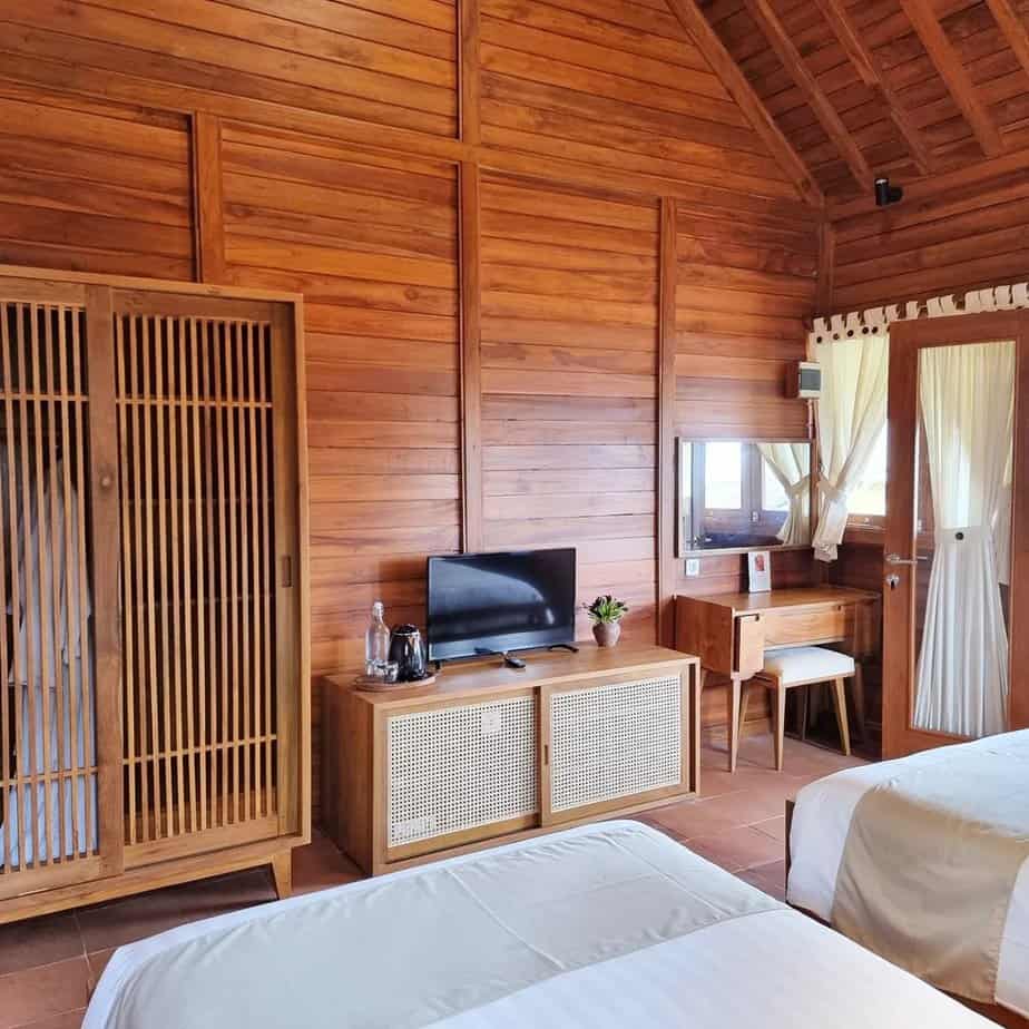 7 Villas (5 Double Bed & 2 Twin Bed). Has own terrace area with glass windows looking out to the rice field and mountain.