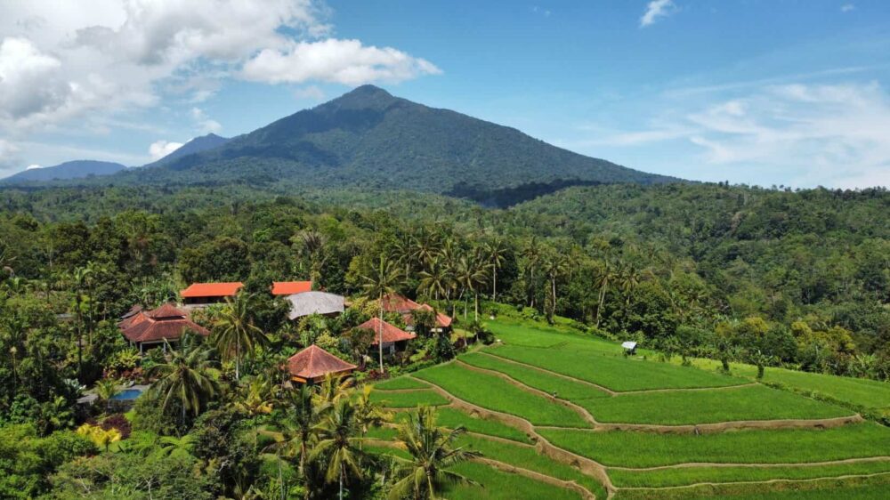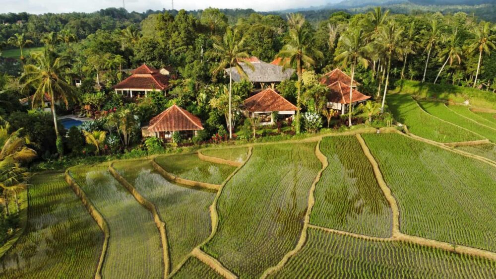 The place where serenity and beauty of nature coalesce. A truly magical scene of lush tropical garden, infinity view of rice fields and endless forest.