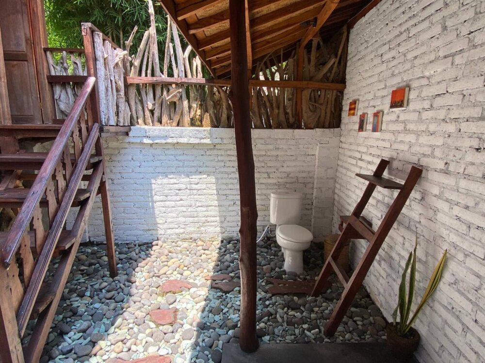 Immerse yourself in the natural world as you indulge in the outdoor bathroom, a refreshing escape under open skies. Step onto your private balcony, adorned with a inviting day bed to relax in style.