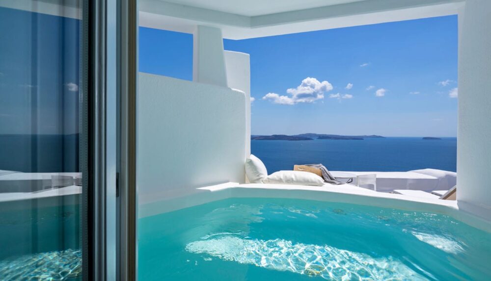 Grace Santorini is an exclusive boutique hotel in Santorini, Greece, perched above the world-famous Caldera with breathtaking views and sumptuous sunsets.