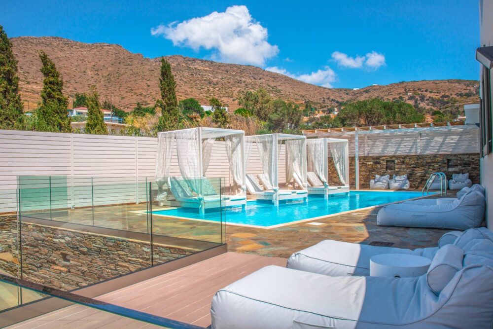 Follow the path through for your holiday inside from the Andros Luxury House and take you to a journey of absolute relaxation and bliss. Indulge yourself to the luxuries of the House and enjoy your morning coffee by the pool that overlooks the endless Aegean Sea, where the horizon blends with the calm pool water.